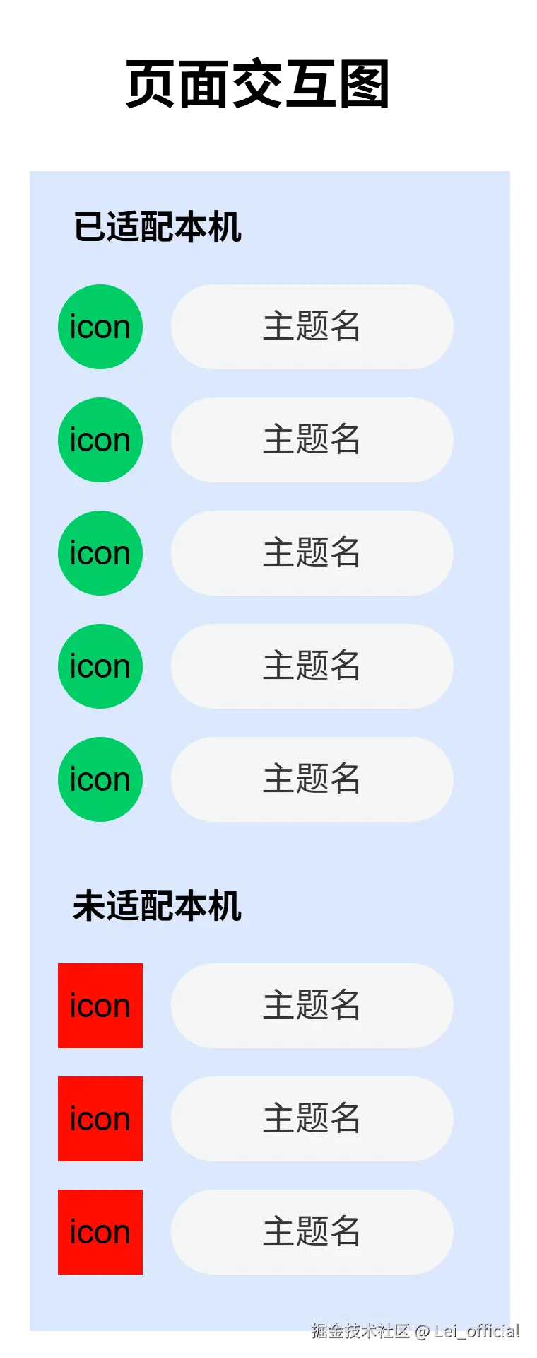 假设前端一屏展示10条数据,且后端接口同样在一次请求中返回10条。前端优先展示"本机已适配"的主题绿色圆圈