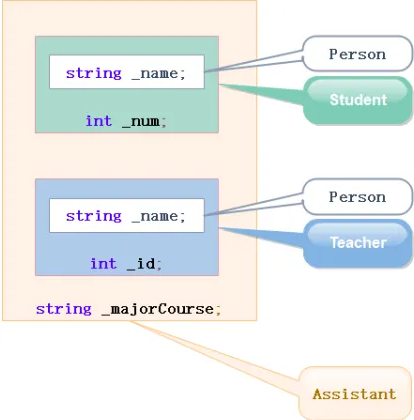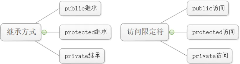 - 基类的私有成员在子类都是不可见。基类的其他成员在子类的访问方式 == Min(成员在基类的访问限定符,继承方式),public > protected > private