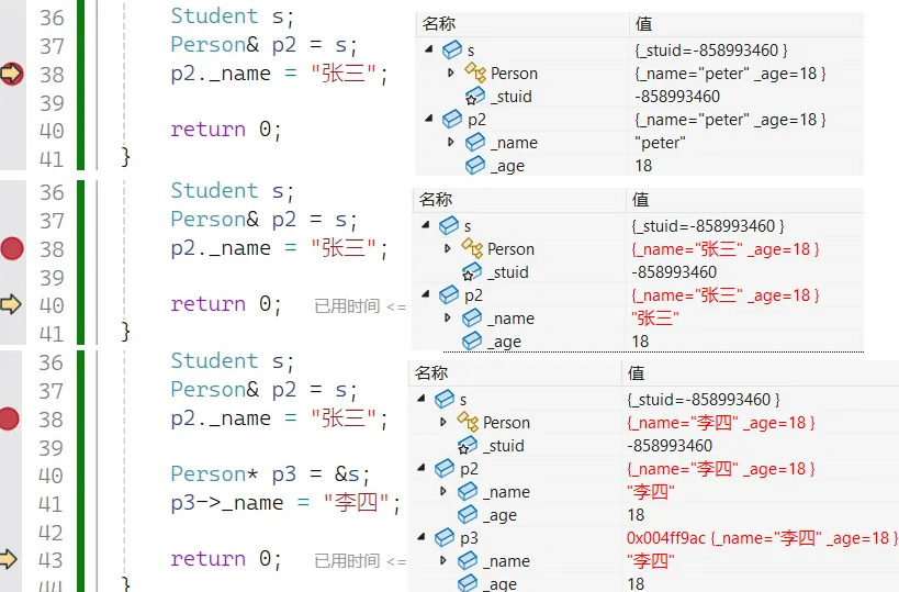 以前的继承:子类对象中的父类成员,和父类对象成员不是同一个