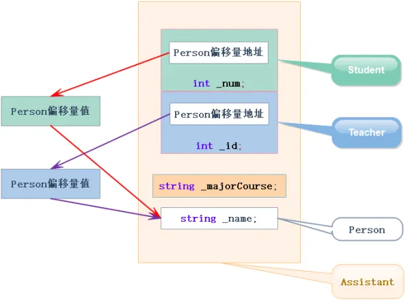 祖师爷引入了虚拟继承****,解决数据冗余、二义性