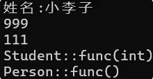 子 类和父 类中有同名成员 ,子类成员将屏蔽父类对同名成员的直接访问,这种情况叫隐藏 , 也叫重定义 。(在子类成员函数中,可以使用父类::父类成员显示访问)