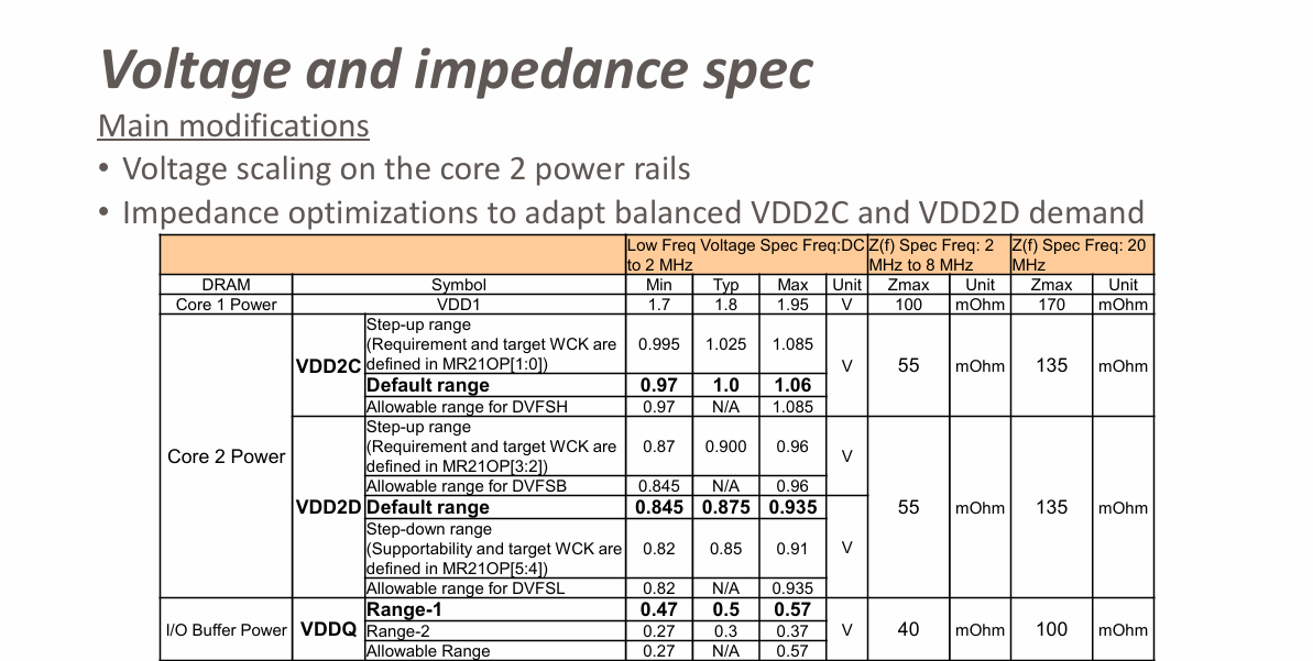 还提到了优化了电源阻抗,以适应VDD2C/VDD2D的需求。