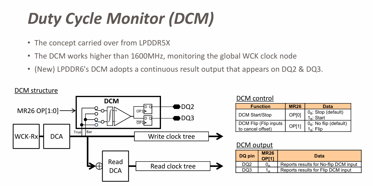 通过比较DQ[2]和DQ[3]之间Bit Update的延时就能确定DCM电路的滞后信息,这部分更多详细内容会在后续的LPDDR6 JEDEC SPEC相关文章中继续介绍。
