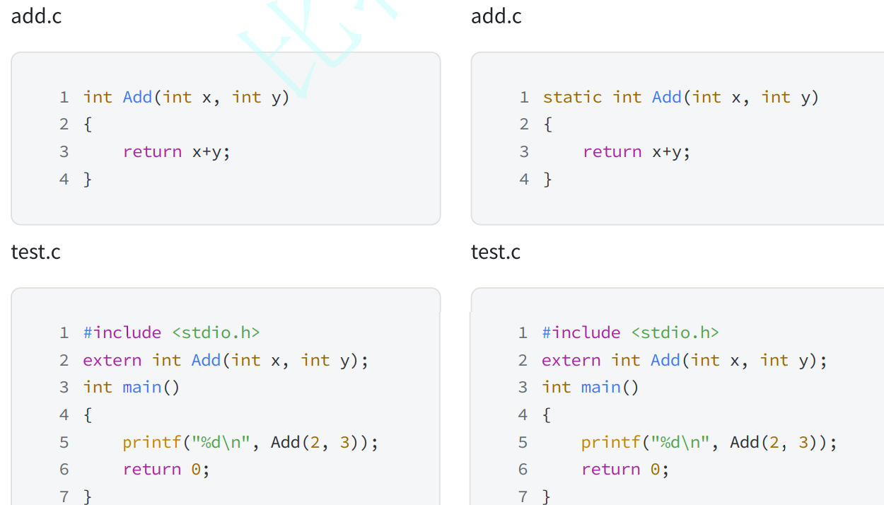 ⼀个全局变量被static修饰,使得这个全局变量只能在本源文件内使用 ,不能在其他源文件内使用。本质原因是全局变量默认是具有外部链接属性的 ,在外部的文件中想使用,只要适当的声明就可以使用;但是全局变量被 static 修饰之后,外部链接属性就变成了内部链接属性 ,只能在自己所在的源文件内部使⽤了,其他源文件,即使声明了,也是⽆法正常使用的。