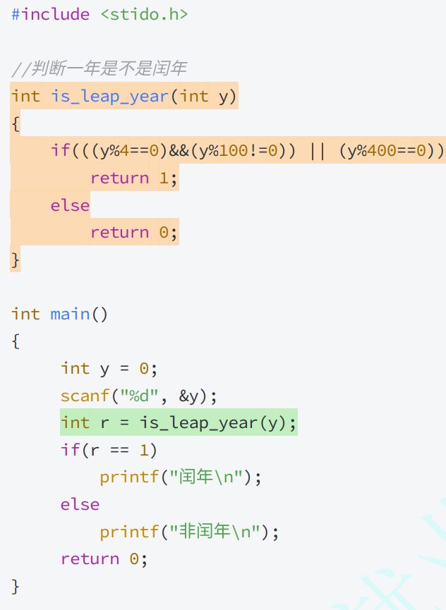 上⾯代码中橙⾊的部分是函数的定义,绿⾊的部分是函数的调用。