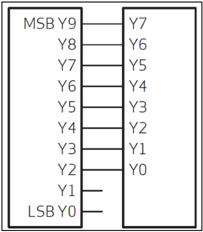 OV5640提供一个 10位 DVP接口(支持 8位接法),其 MSB和 LSB可以程序设置先后顺序,原子 OV5640 模块采用默认的 8 位连接方式,如图 35.1.1.2 所示: