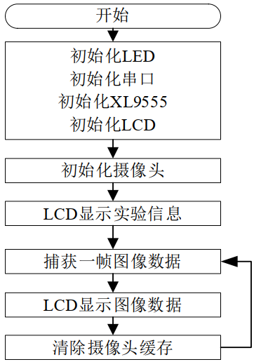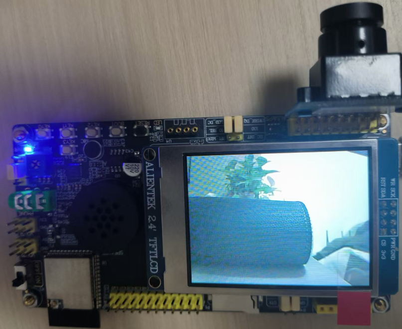 程序下载到开发板后, LCD 显示屏不断更新摄像头输出的图像数据,如下图所示。