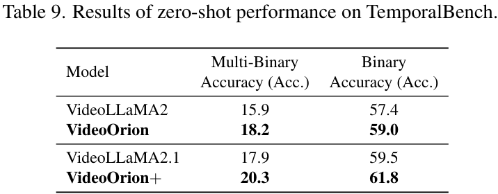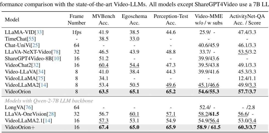 VideoOrion在多个视频理解基准测试中都取得了非常亮眼的成绩。