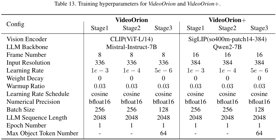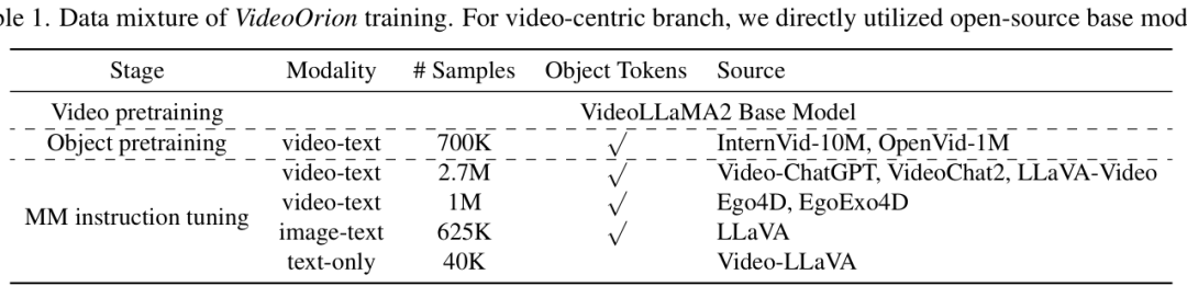 整个训练过程分为三个阶段:首先是视频为中心分支的预训练,然后是物体为中心分支的预训练,最后是在多种指令数据上进行多模态指令微调。这样的分步训练策略,保证了模型各个模块都能得到充分的学习。