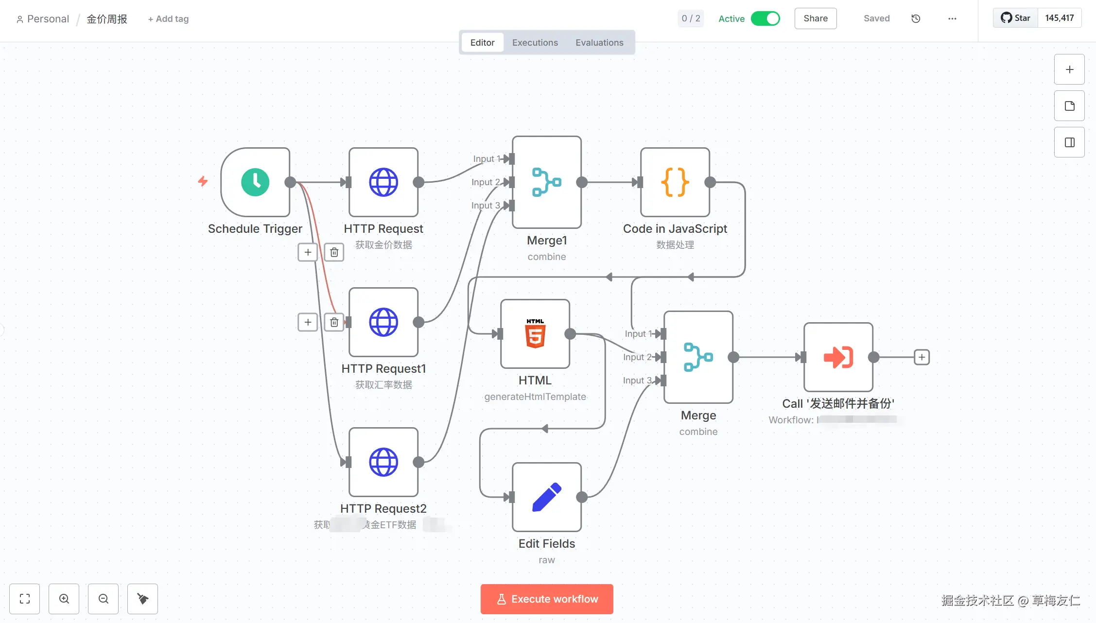 在通过接口获取到数据后,就是生成对应的 HTML 文件,最后通过邮件节点发送到邮箱。