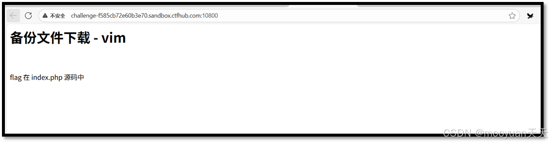 打开靶场URL(challenge-f585cb72e60b3e70.sandbox.ctfhub.com:10800),进入了备份文件下载-vim页面,提示"flag在index.php源码中",具体如下所示。