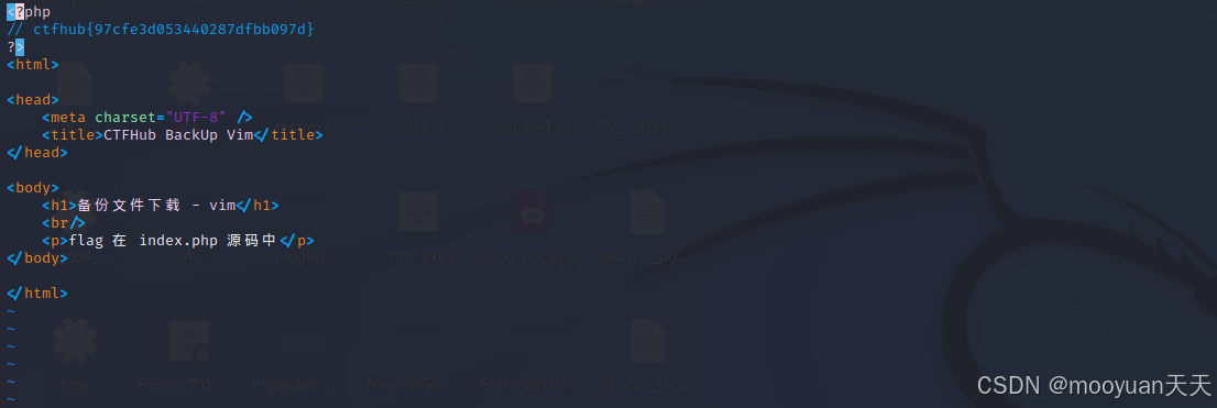 点击回车,如下所示,可以通过vim查看和编辑恢复成功后的index.php,成功获取到flag。