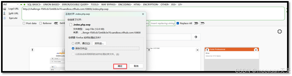 访问如上URL地址后页面提示是否下载.index.php.swp文件,点击确认保存文件,如下所示。