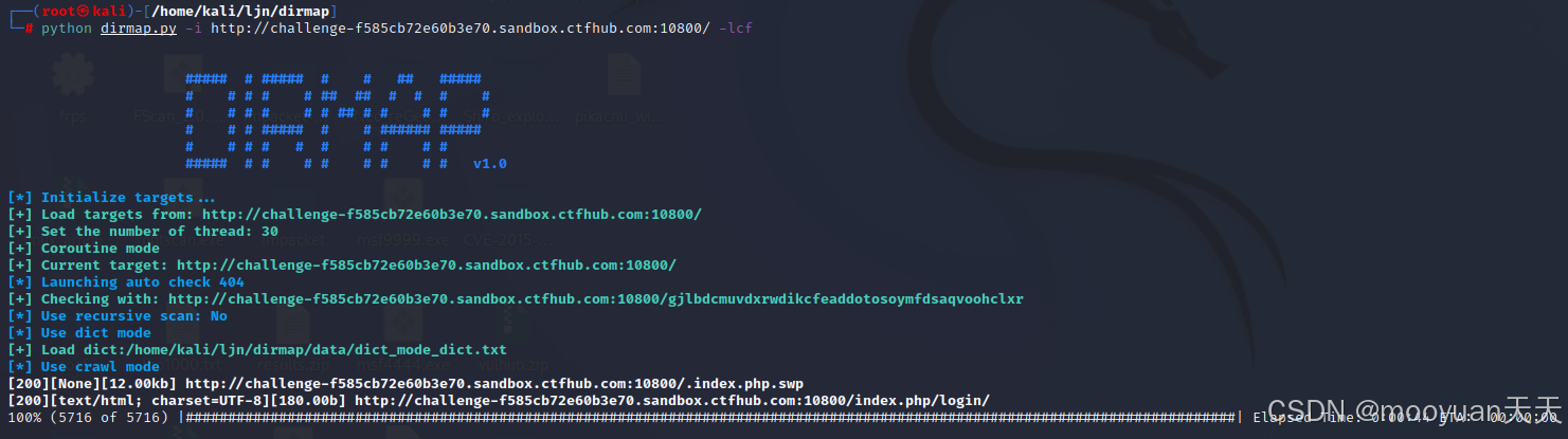 python dirmap.py -i http://challenge-f585cb72e60b3e70.sandbox.ctfhub.com:10800/ -lcf
