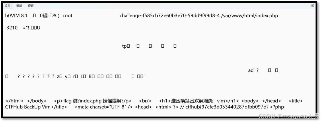 打开.index.php.swp文件,即可查看到flag值,如下图所示。