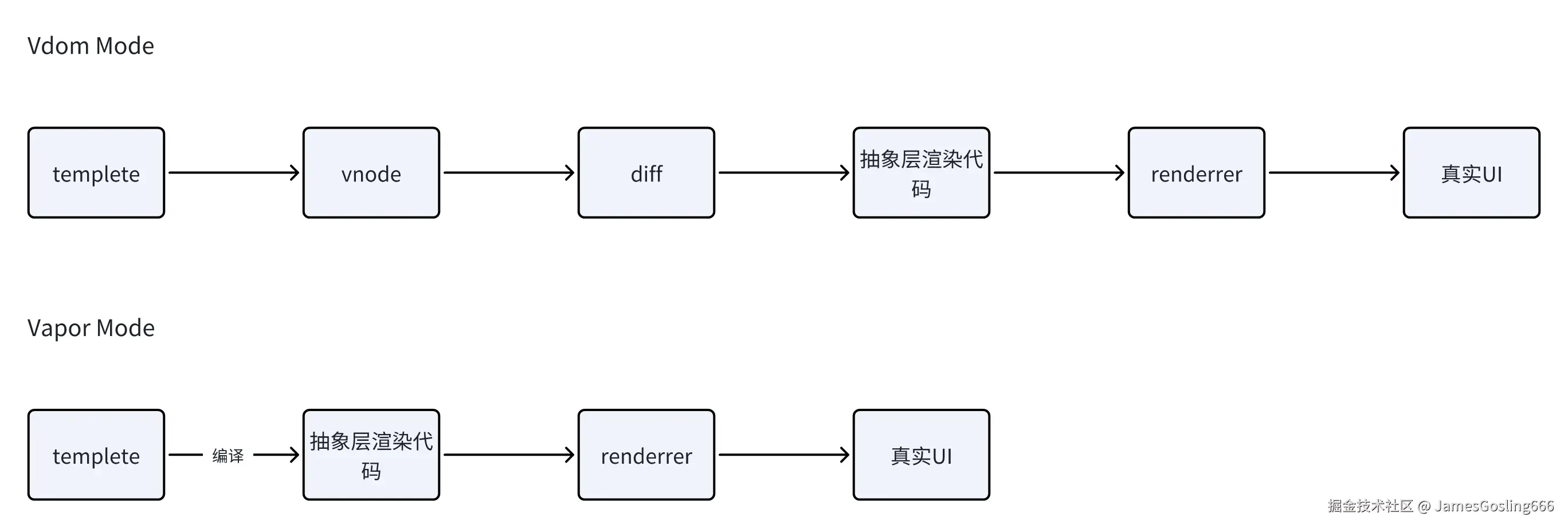 (目前vdom和vapor是兼容状态,估计vue4就彻底和vdom拜拜了)