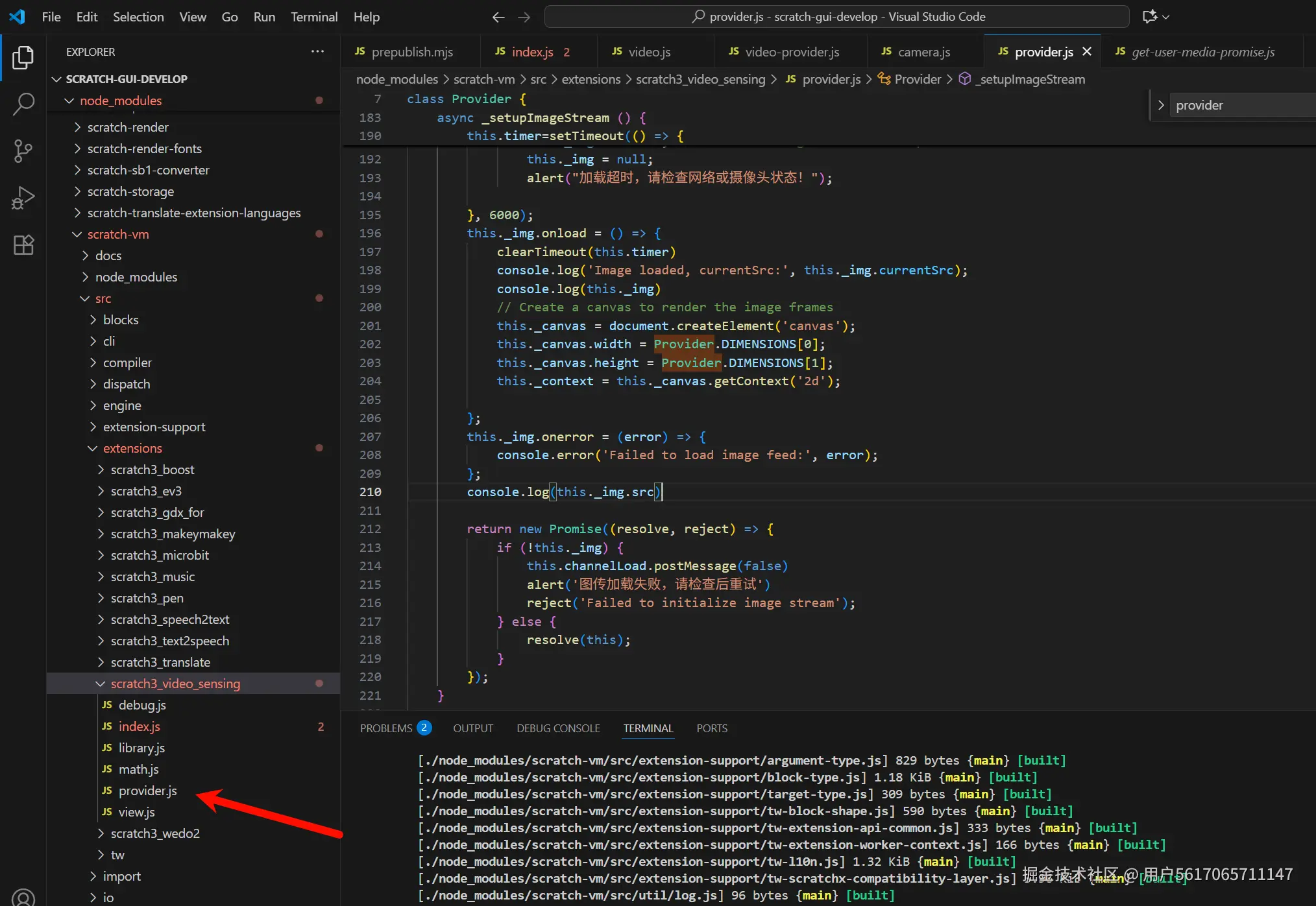 这三个函数是开启关闭摄像头的关键,想必大家也发现了,这里面用到了provider来开启摄像头,可是这个provider在哪里呢,这个文件里面provider默认为空,那肯定是在别的地方动态定义了他的具体内容,我们接着找,由于我开发过一段时间的scratch了,所以我第一反应可能是在以下目录中的文件有相关该内容的定义