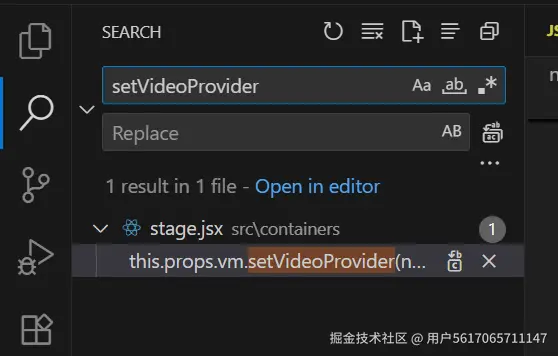 接下来直接使用vscode里面的全项目的搜索来搜索setVideoProvider函数的调用的地方