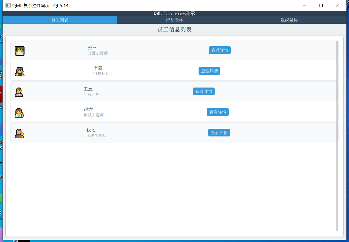 onClicked: console.log("查看员工:", name)