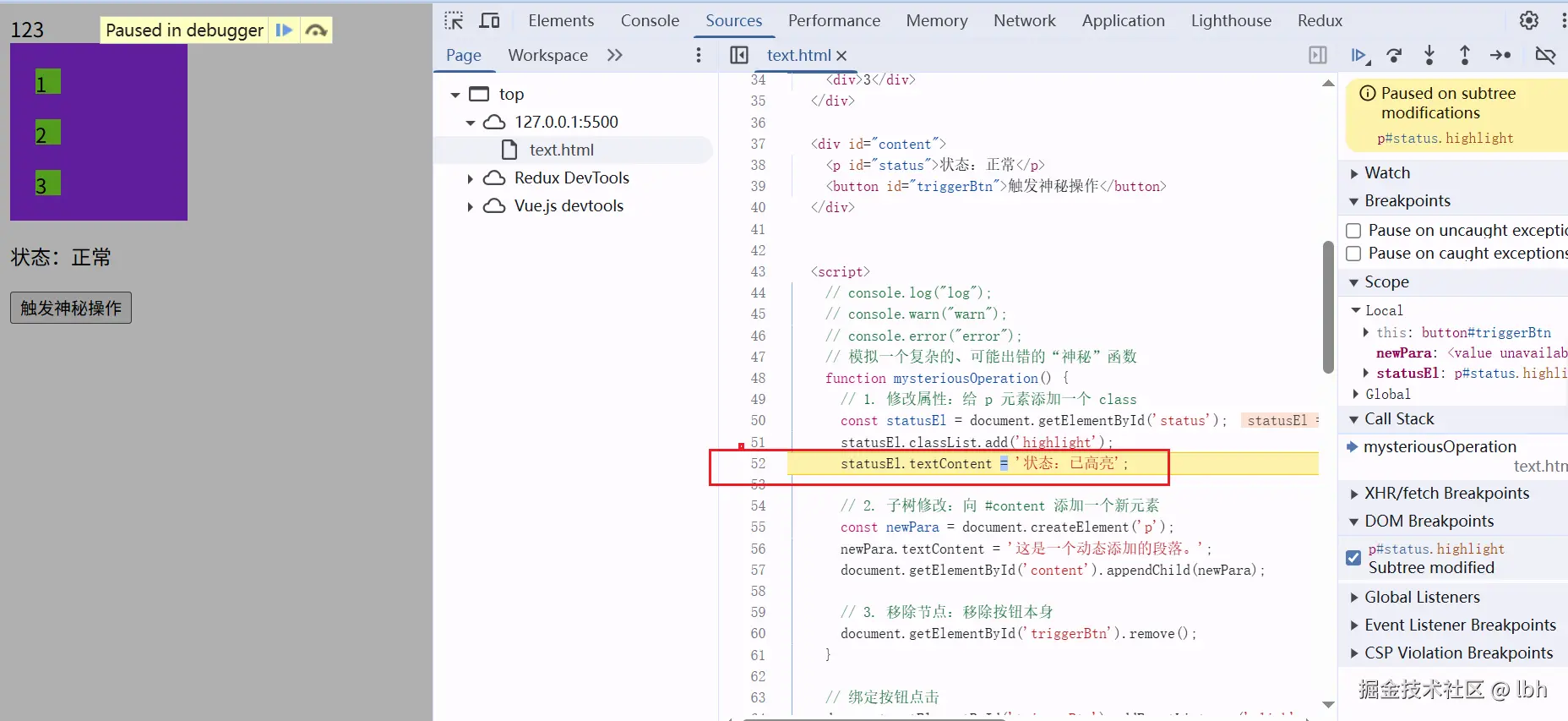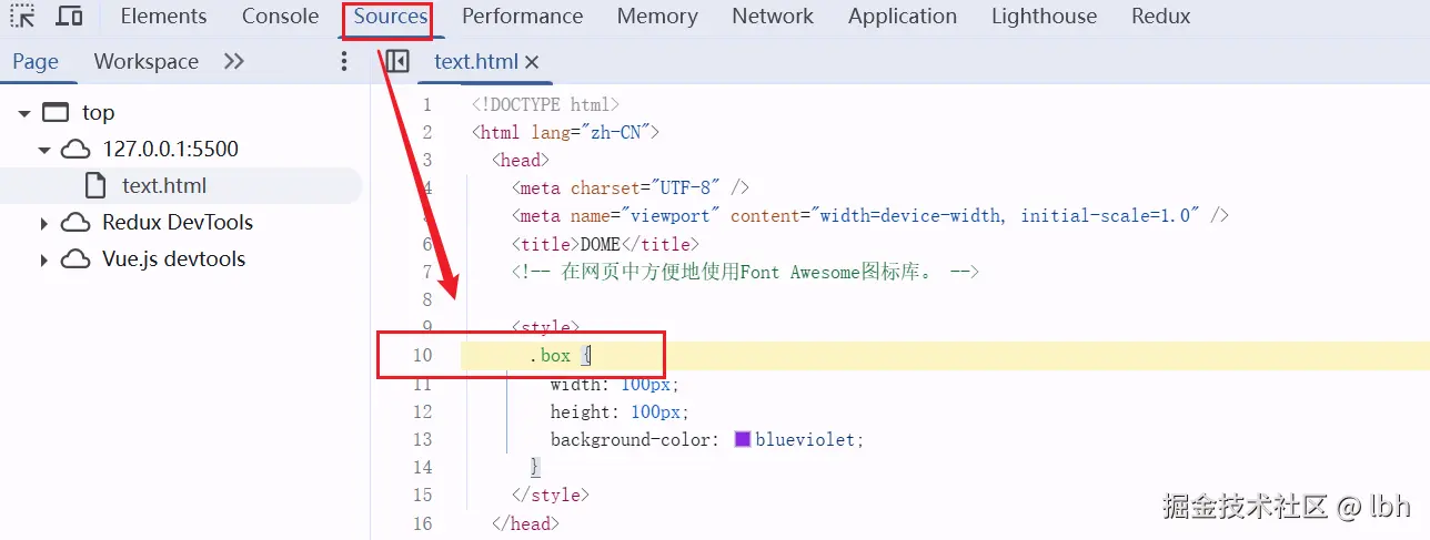 时,DevTools 会自动:- 切换到 Sources (源码) 面板。