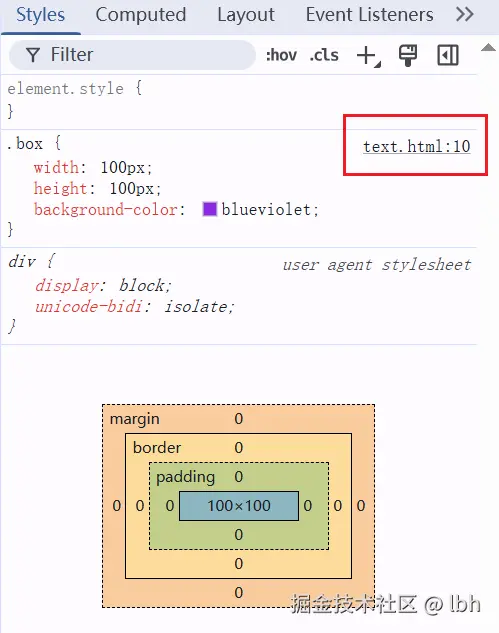 - 在 DevTools 中,它会明确告诉你这条样式规则定义在哪个 CSS 文件 中,以及具体在文件的第几行。