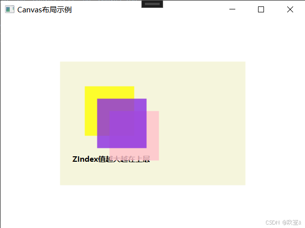 <TextBlock Canvas.Left="20" Canvas.Top="150" Text="ZIndex值越大越在上层" FontWeight="Bold"/>