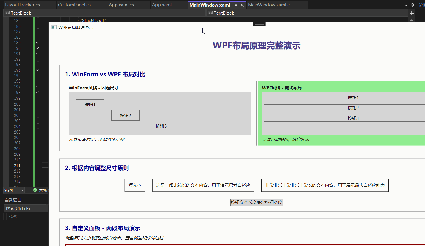 <TextBlock Text="1. 运行程序后查看控制台输出,了解布局过程"/>