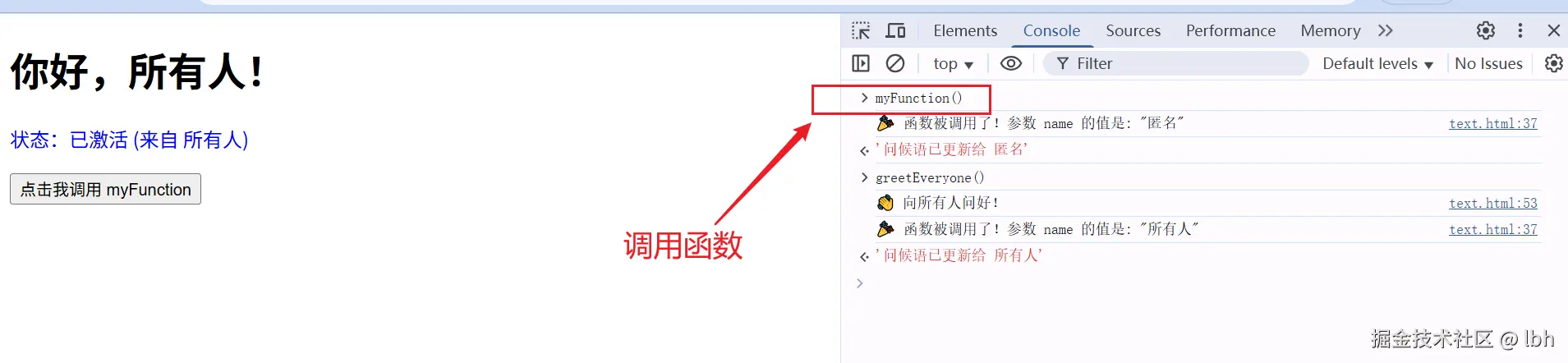 <button onclick="myFunction('用户')">点击我调用 myFunction</button>