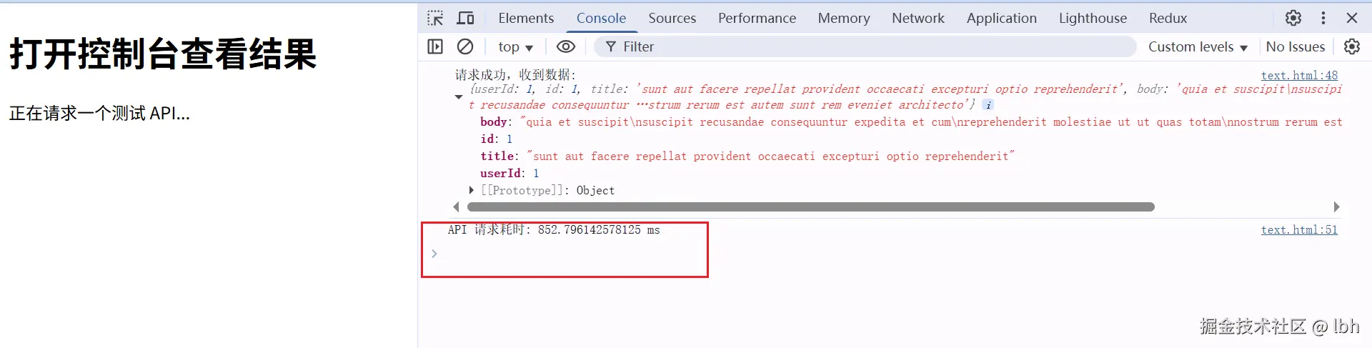 // 输出示例: API 请求耗时: 123.45ms