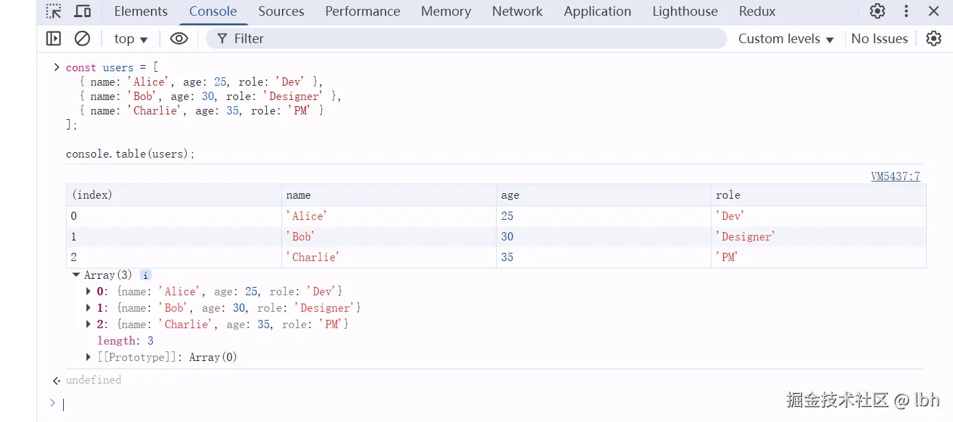 查看结构化数据 | console.table() |