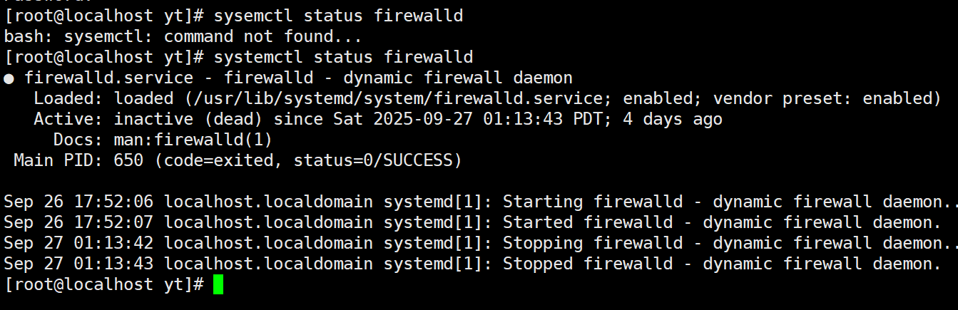 [root@localhost yt]# sysctl -p /etc/sysctl.conf