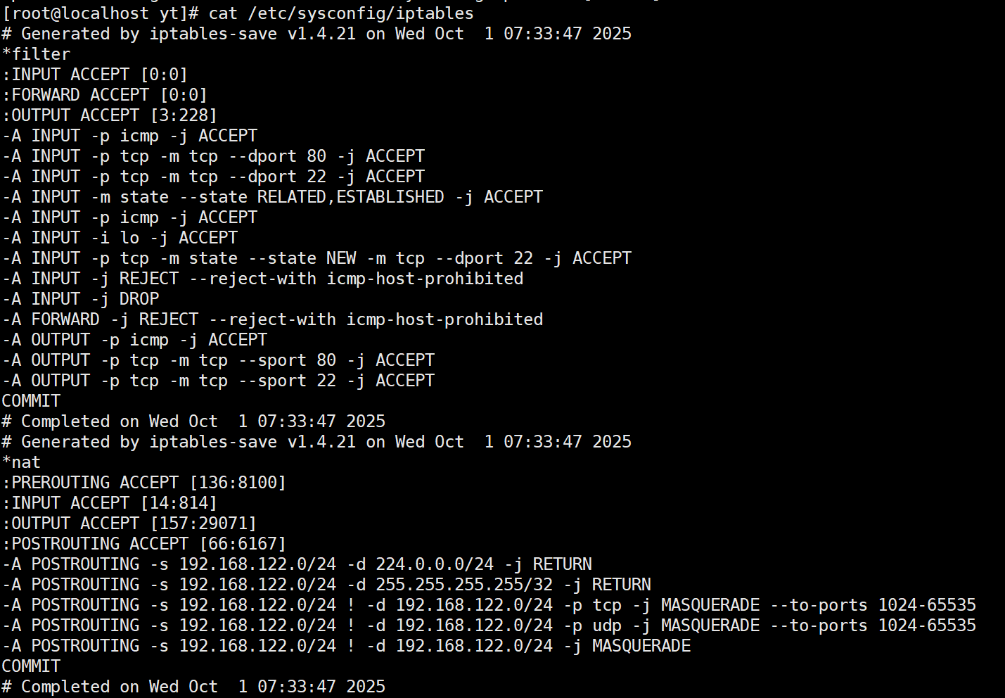 [root@localhost yt]# cat /etc/sysconfig/iptables
