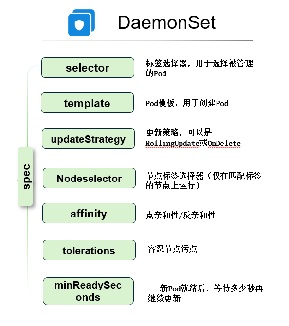- DaemonSet 强调 nodeSelector/tolerations(节点选择);