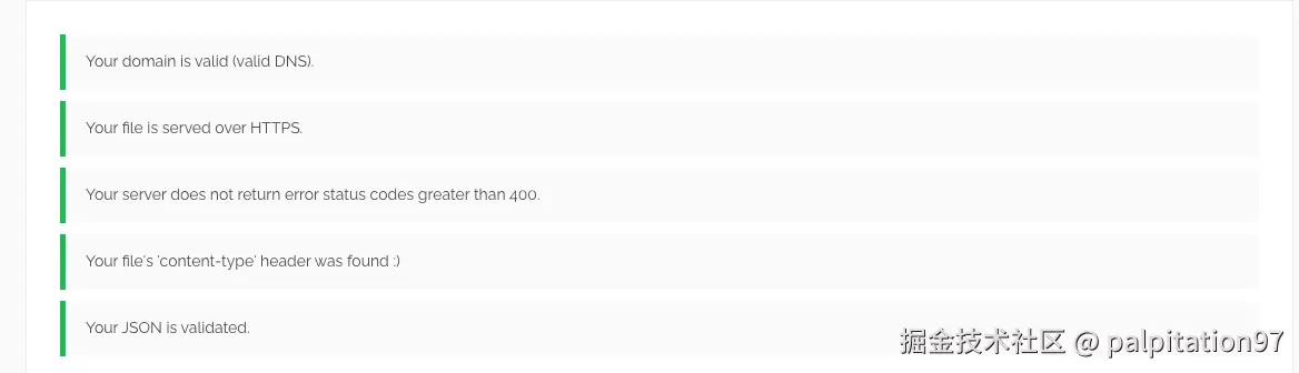 注意:这里的域名必须与 .well-known 文件所在的域完全一致(不支持通配符)。