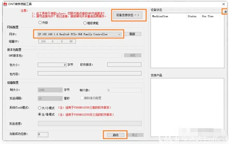 点击启动后,等待右侧出现成功字样或者等左下角的"当前成功总数"显示为1及以上字样后,点击停止,关闭软件,手动重启光猫。做到这一步,我们就已经补全了shell。