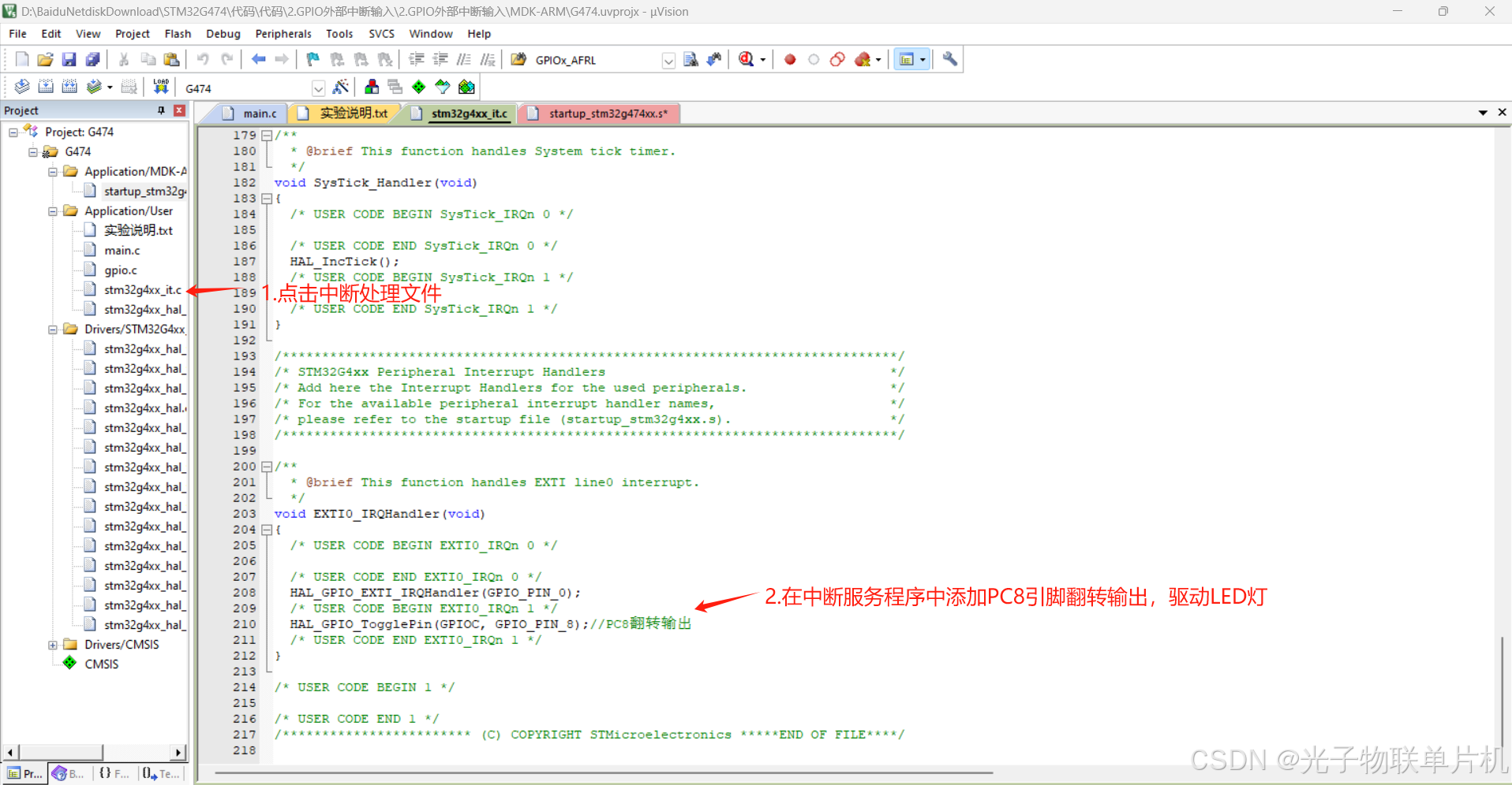 我们应用程序一般在stm32g4xx_it.c中对中断服务程序进行应用修改就可以。