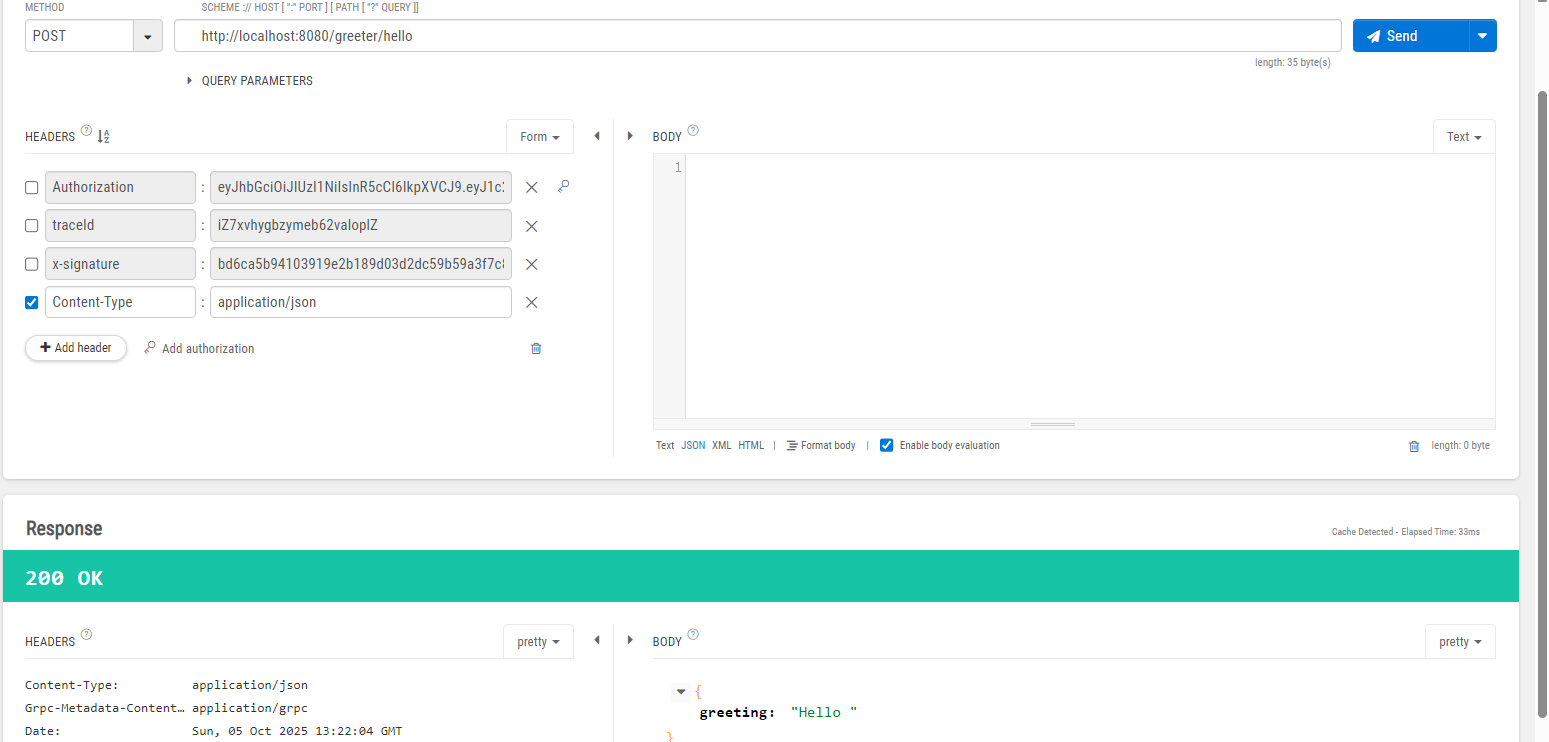 gosyntax = "proto3"; option go_package="proto/greeter"; import "google/api/annotations.proto"; service Greeter{ rpc Hello(Request) returns (Response){ option(google.api.http)={ post :"/greeter/hello" body:"*" }; } } message Request{ string name = 1; } message Response{ string greeting=2; } -