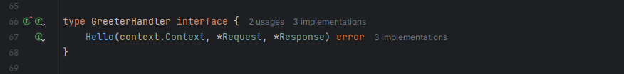 在hello.pb.micro.go中,micro生成了一个接口GreeterHandler,所以我们需要在代码中实现这个新的接口。