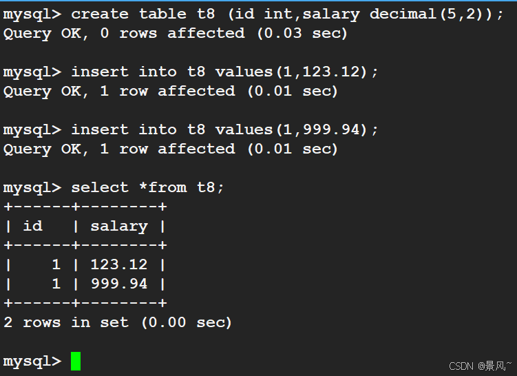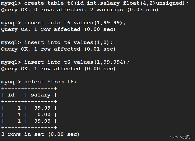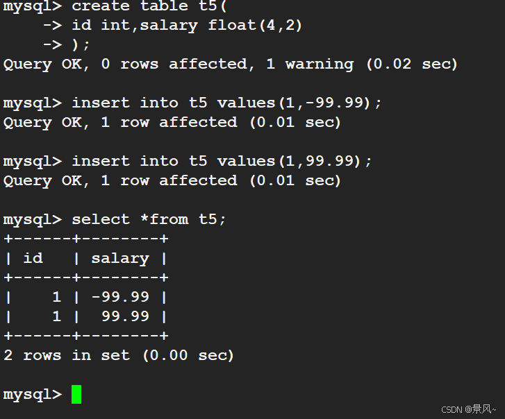 注:MySQL8.0以后的版本使用float警告信息更严格