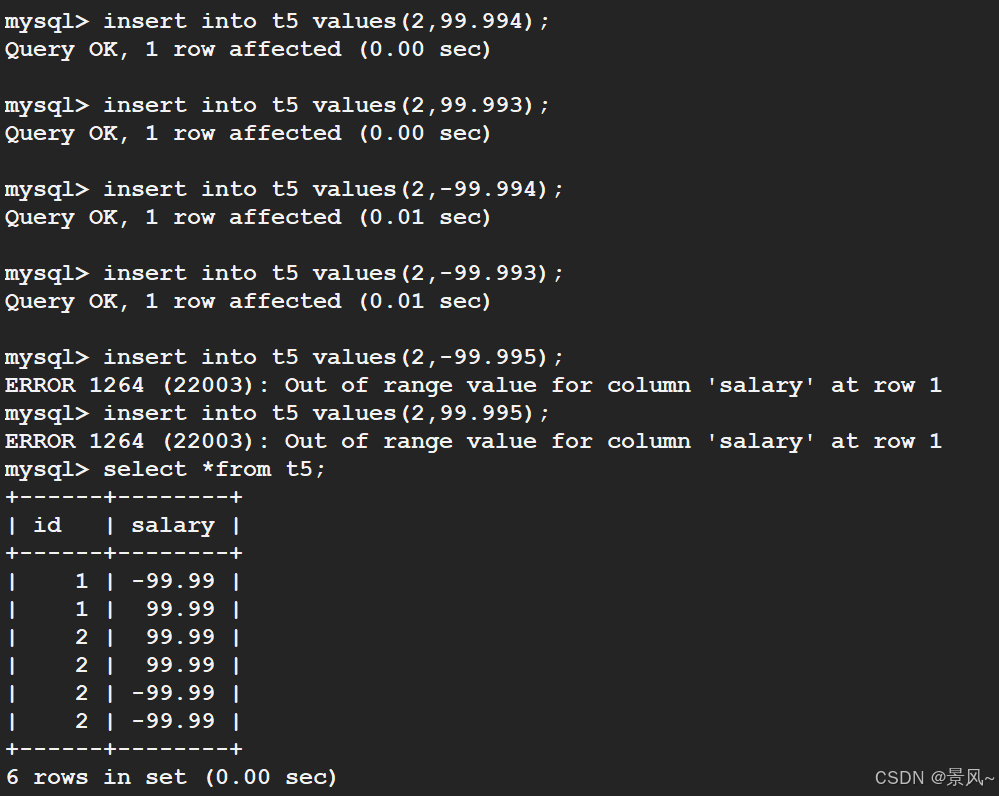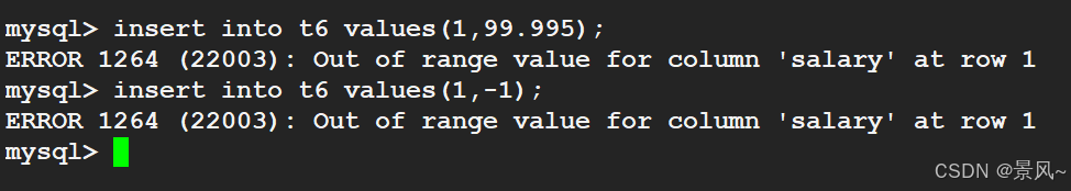 如果插入的数据不在0~99.994范围内,那么插入数据时就会产生报错。如下: