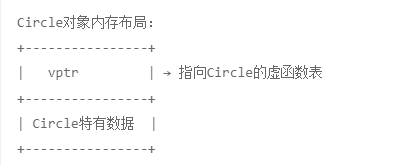 - Circle对象中有虚函数表指针,再才是Circle特有数据