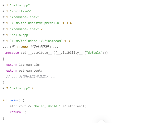 预处理(单纯文本替换,将 cout 的声明插入源码)