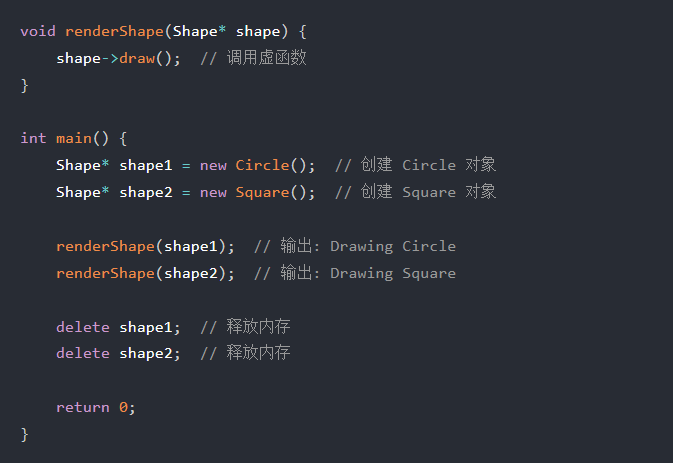 Shape* shape1 = new Circle(); // 基类指针指向派生类对象