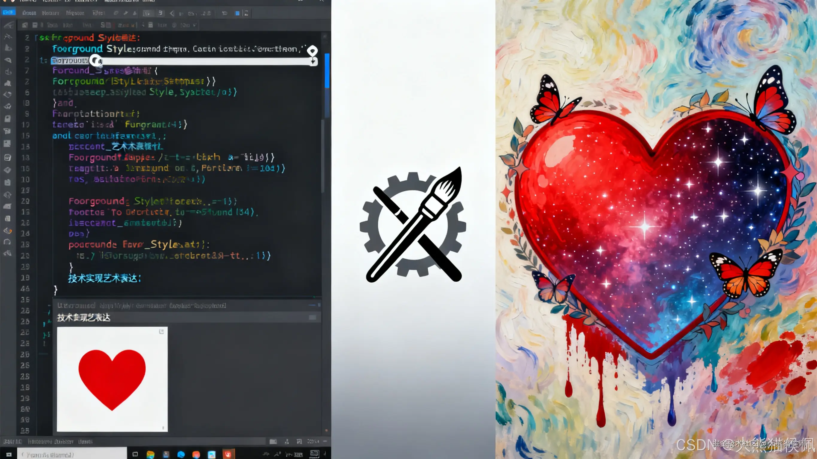 整体效果是:一颗会跳动、颜色动态流动的彩虹心。