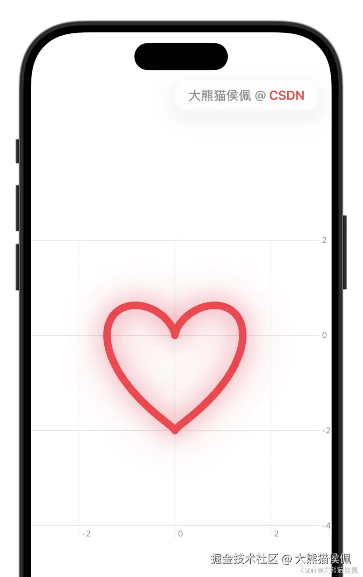 使用 SwiftUI Charts 框架绘制一个红心形状,并在心形上添加渐变色、阴影效果,同时设置坐标轴范围和工具栏文字。