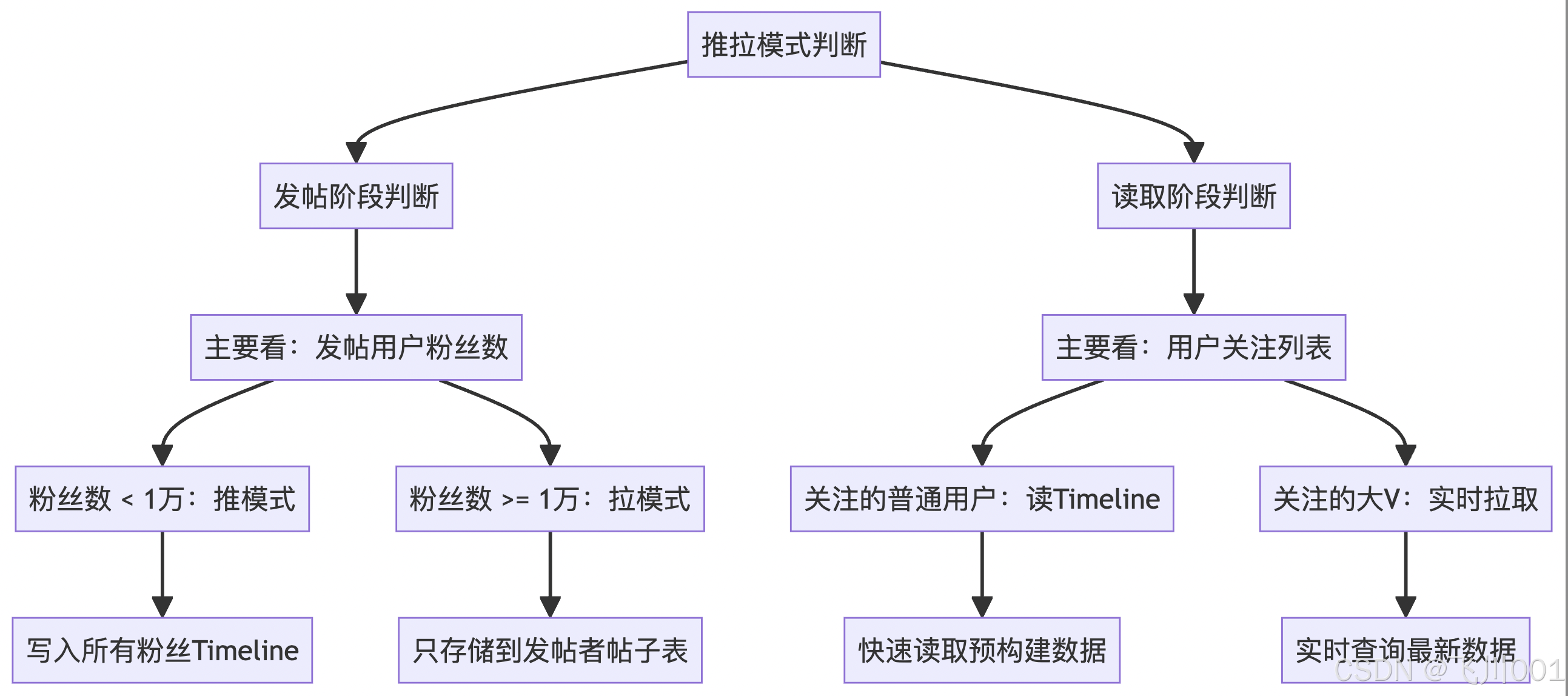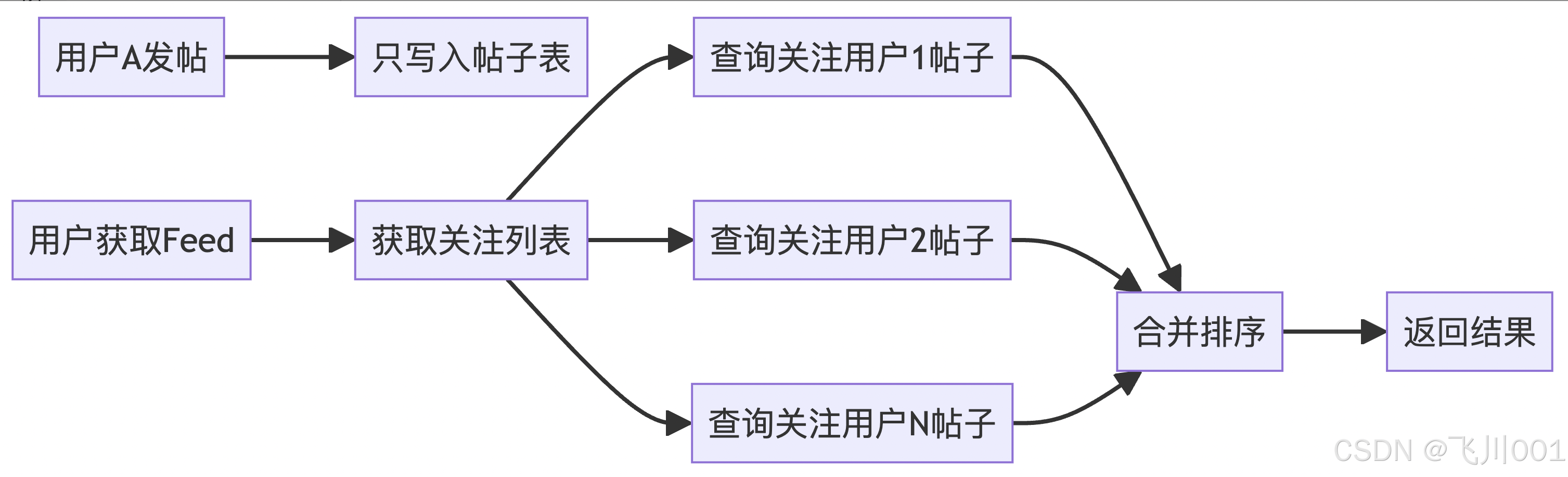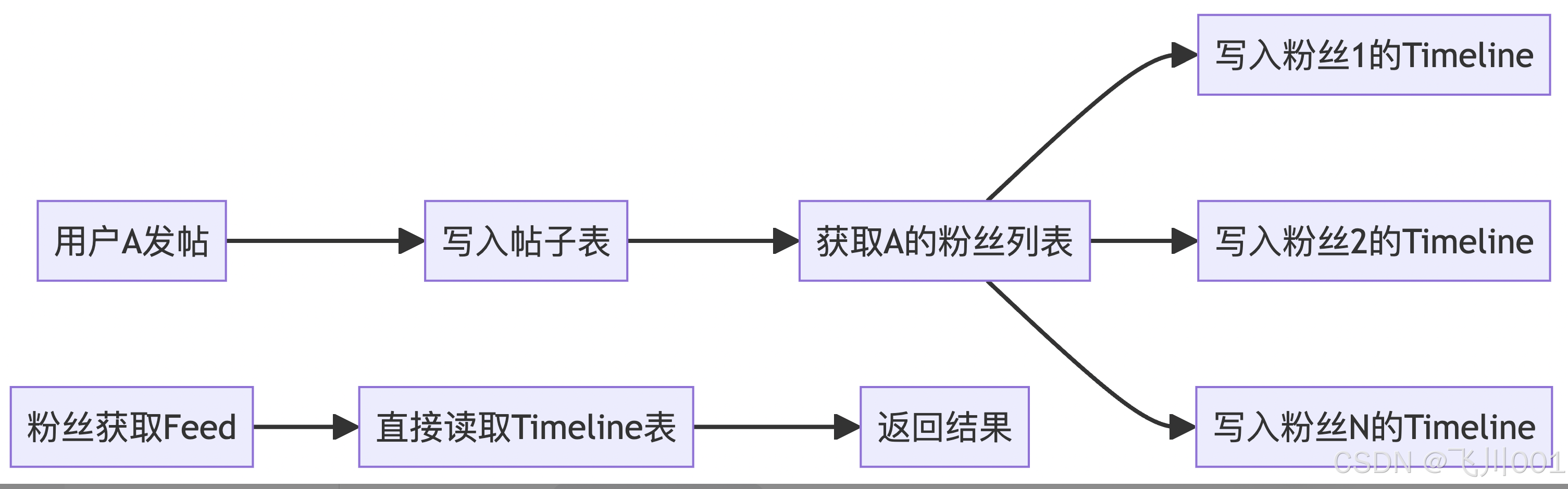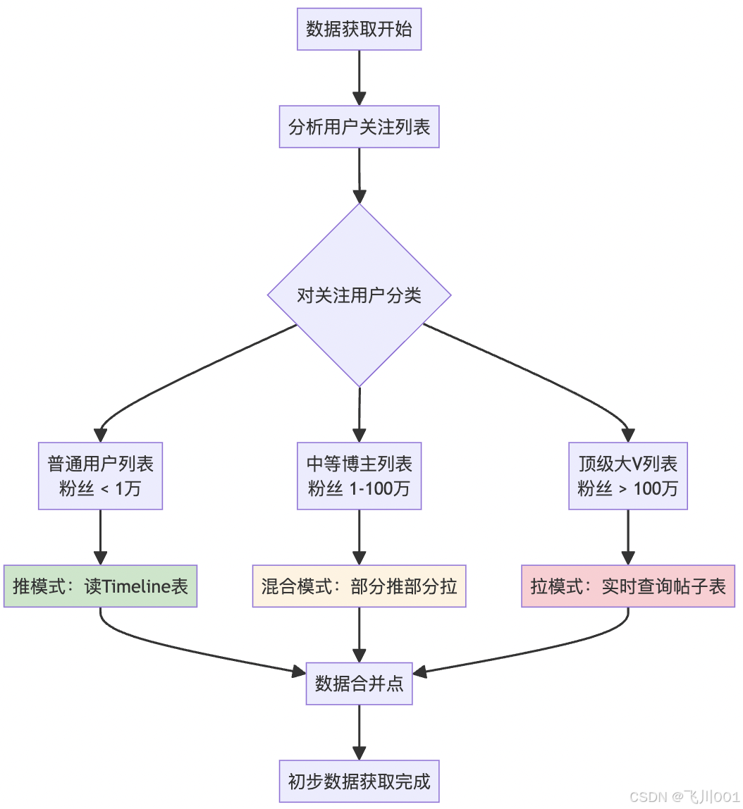 写扩散:普通用户发布 → 推送给所有粉丝timeline