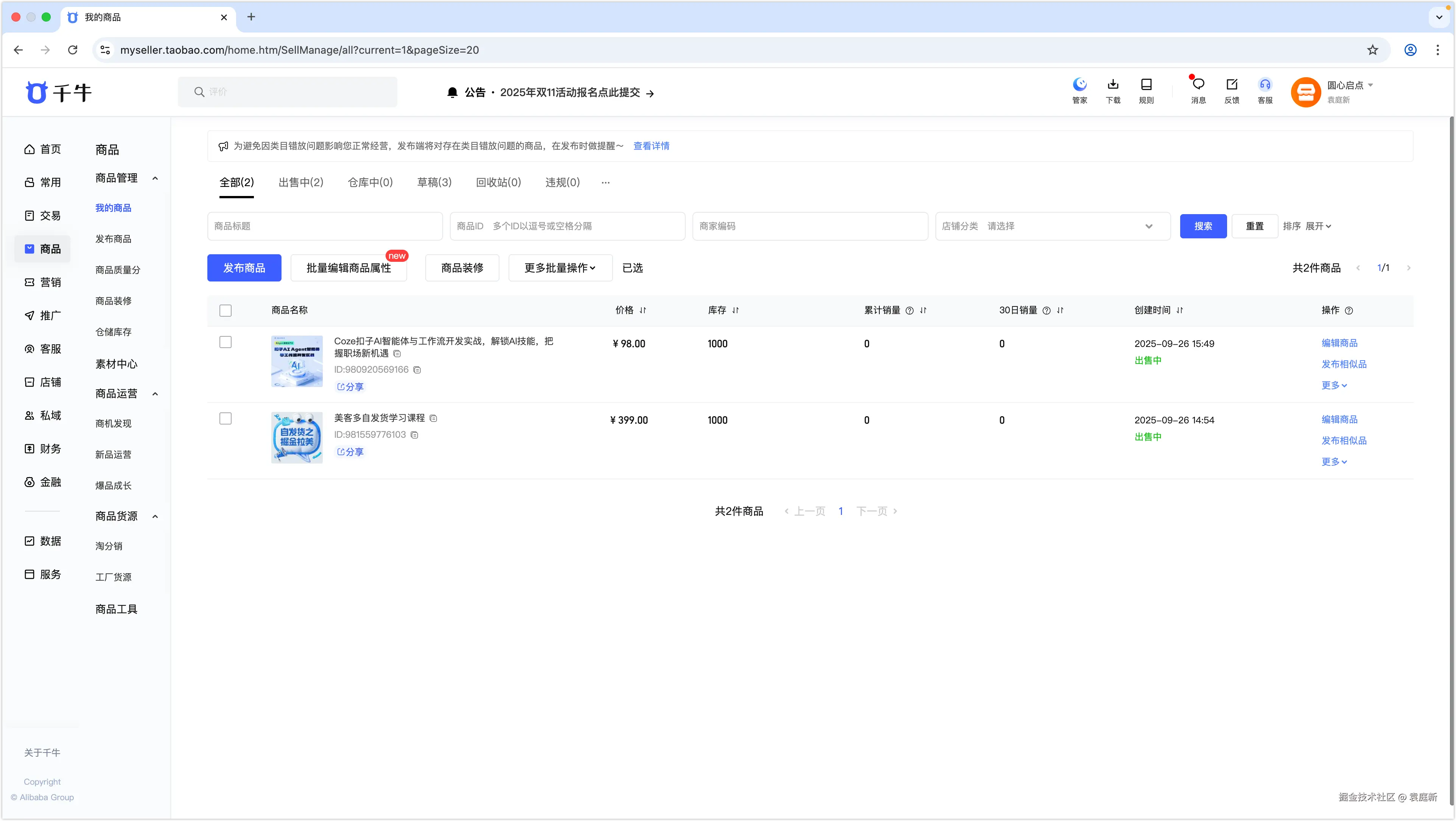 9月份,完成了小鹅通店铺的搭建以及淘宝店铺的搭建,并上架了相应的产品。
