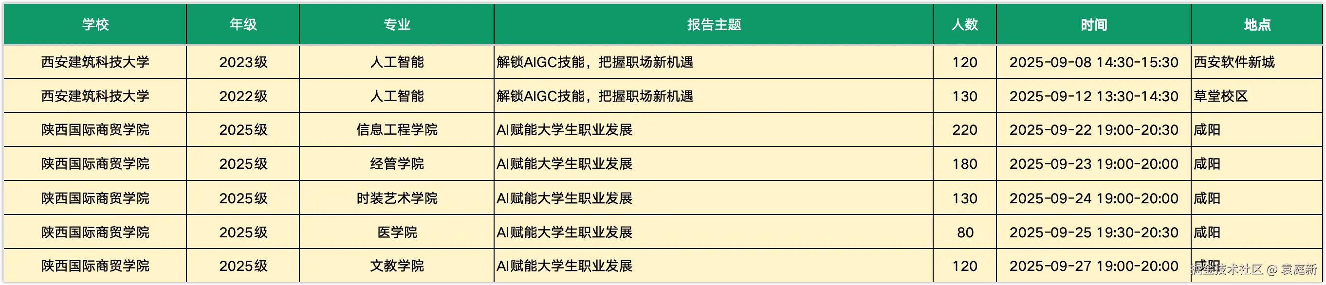 9月,我受邀为西安建筑科技大学和陕西国际商贸学院开展了7场关于AI的专题报告,累计覆盖学员超过1000人。