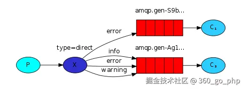 - Exchange不再把消息交给每一个绑定的队列,而是根据消息的RoutingKey进行判断,只有队列的RoutingKey与消息的RoutingKey完全一致,才会接收到消息。