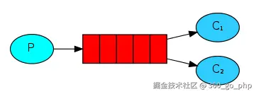 使用队列(Queue) 作为消息通信载体;满足生产者与消费者模式,一条消息只能被一个消费者使用,未被消费的消息在队列中保留直到被消费或超时。比如:我们生产者发送 100 条消息的话,两个消费者来消费一般情况下两个消费者会按照消息发送的顺序各自消费一半(也就是你一个我一个的消费。)